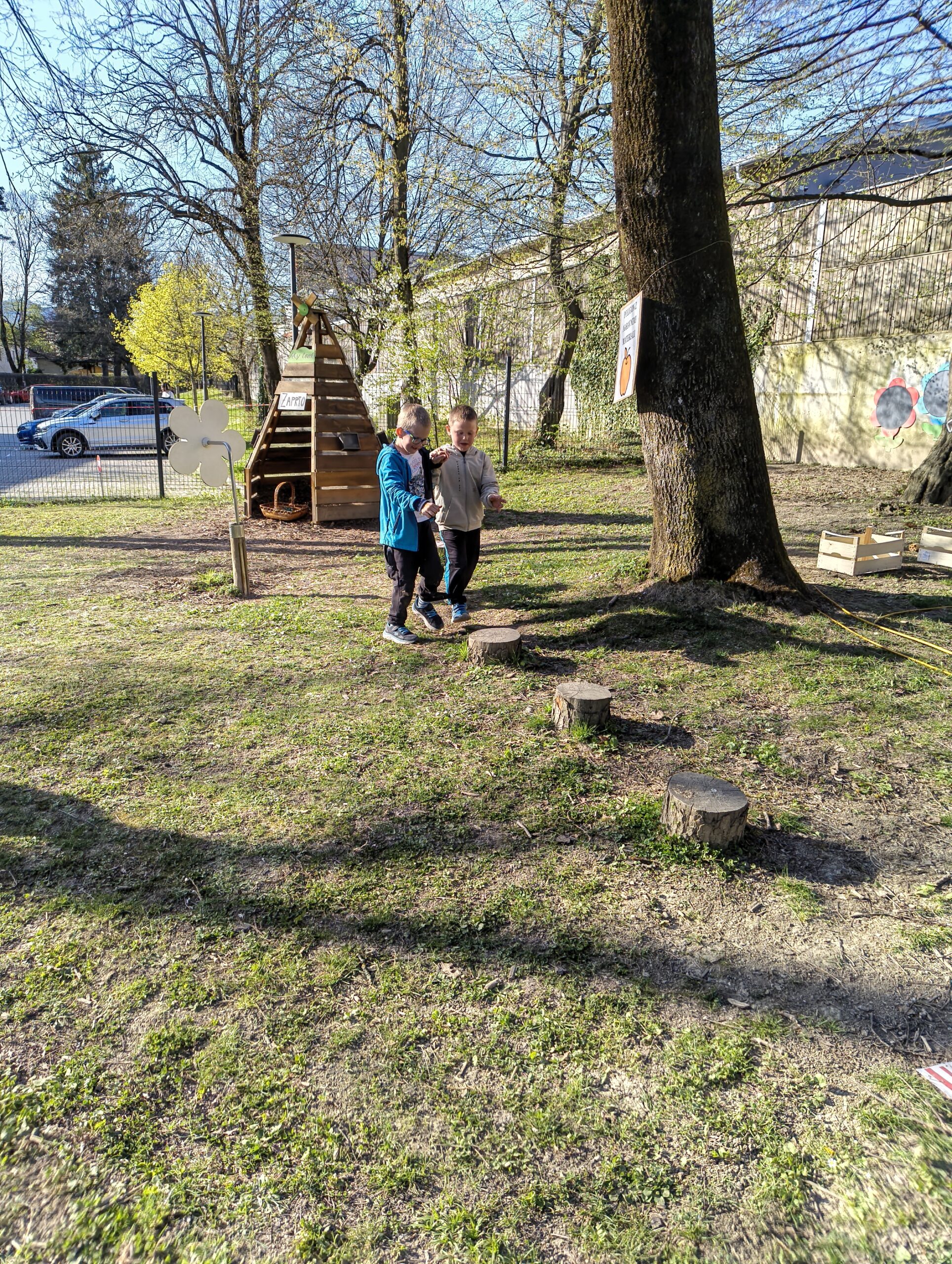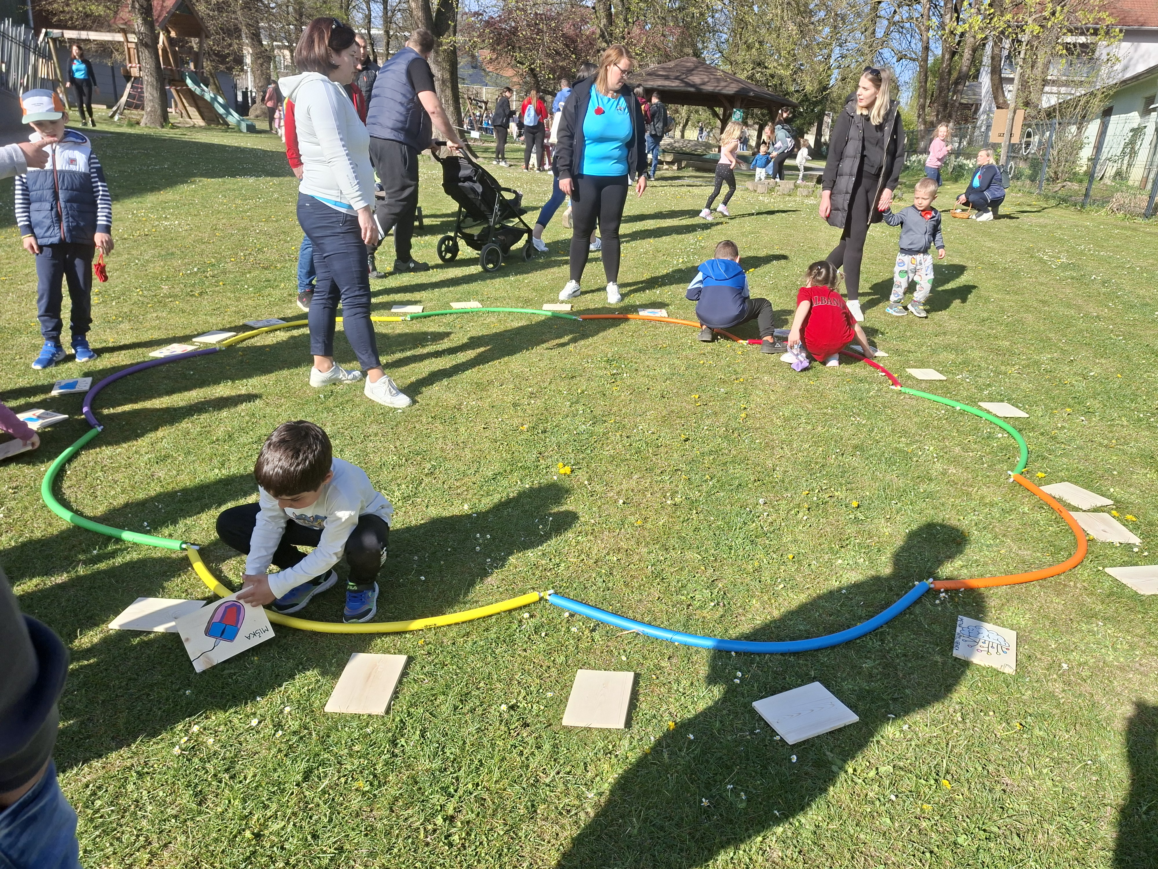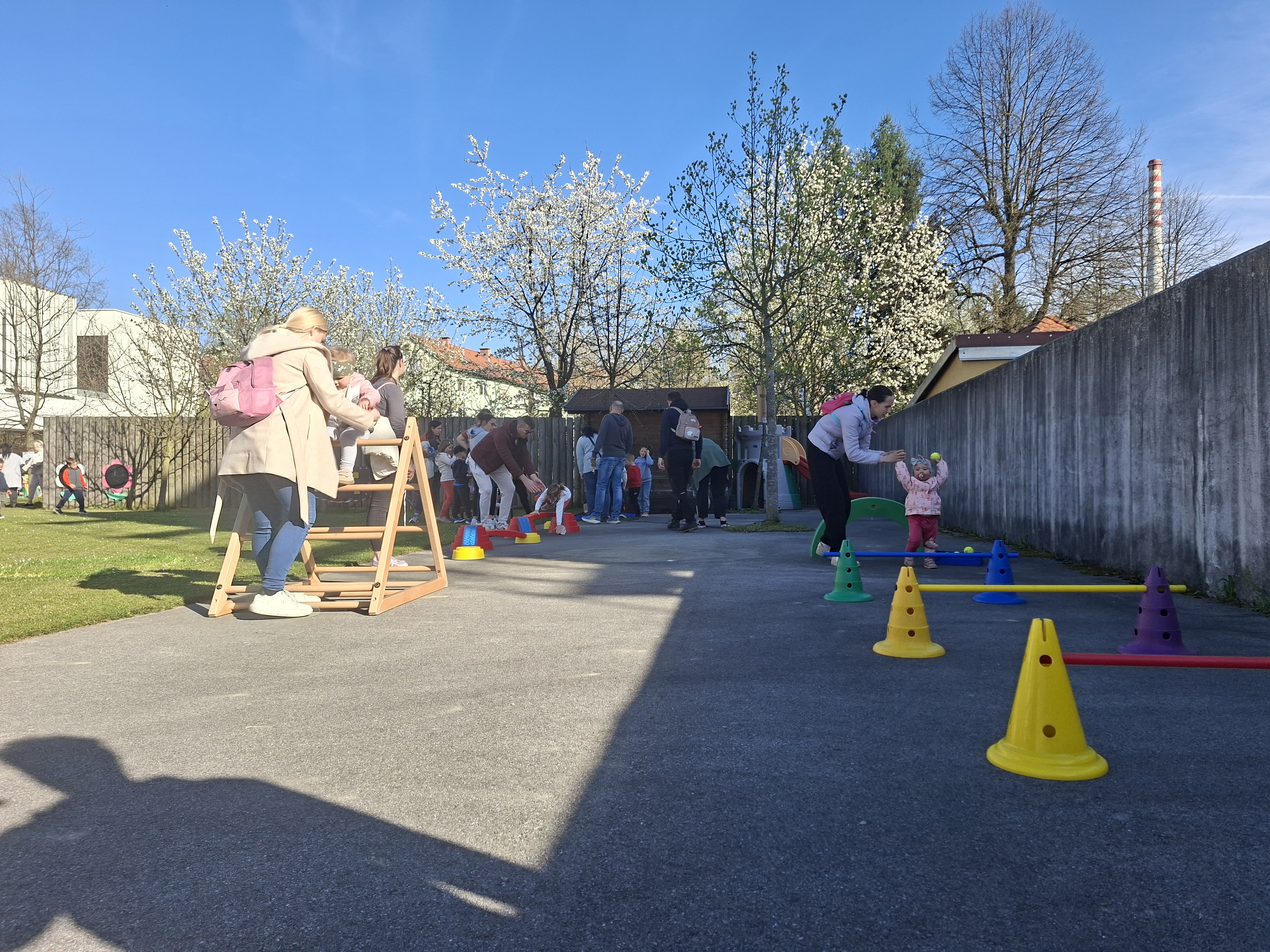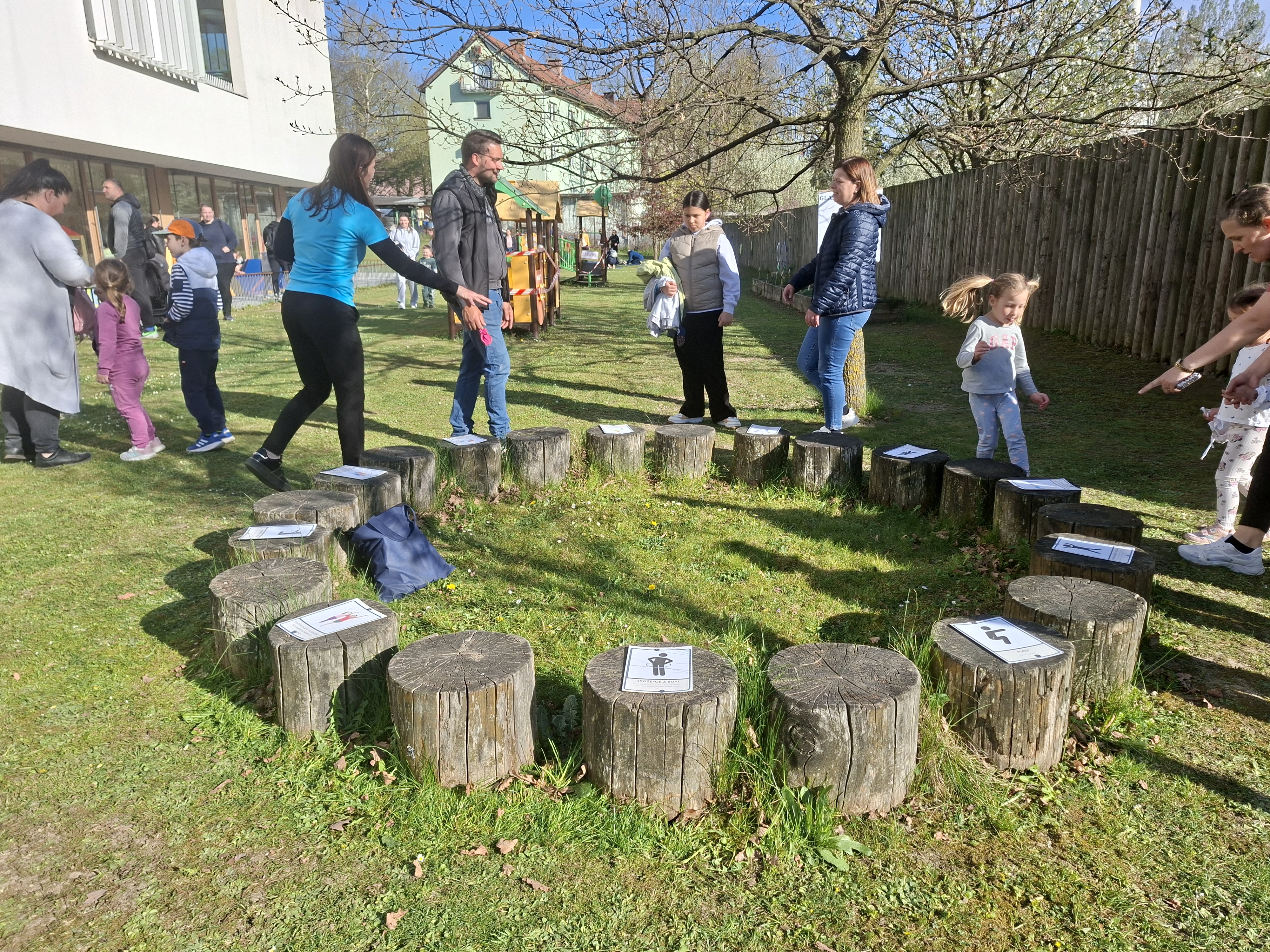 V četrtek, 9. 4. 2026, je bilo v našem vrtcu zelo živahno. Izpeljali smo dogodek z naslovom “Hoja, gibanje, smeh – za zdravje vseh”. Po uvodnem pozdravu smo se skupaj ogreli ob plesnih ritmih “Račk”, nato pa so se otroci in starši podali na igrišče, kjer jih je čakalo 13 različnih gibalnih postaj.