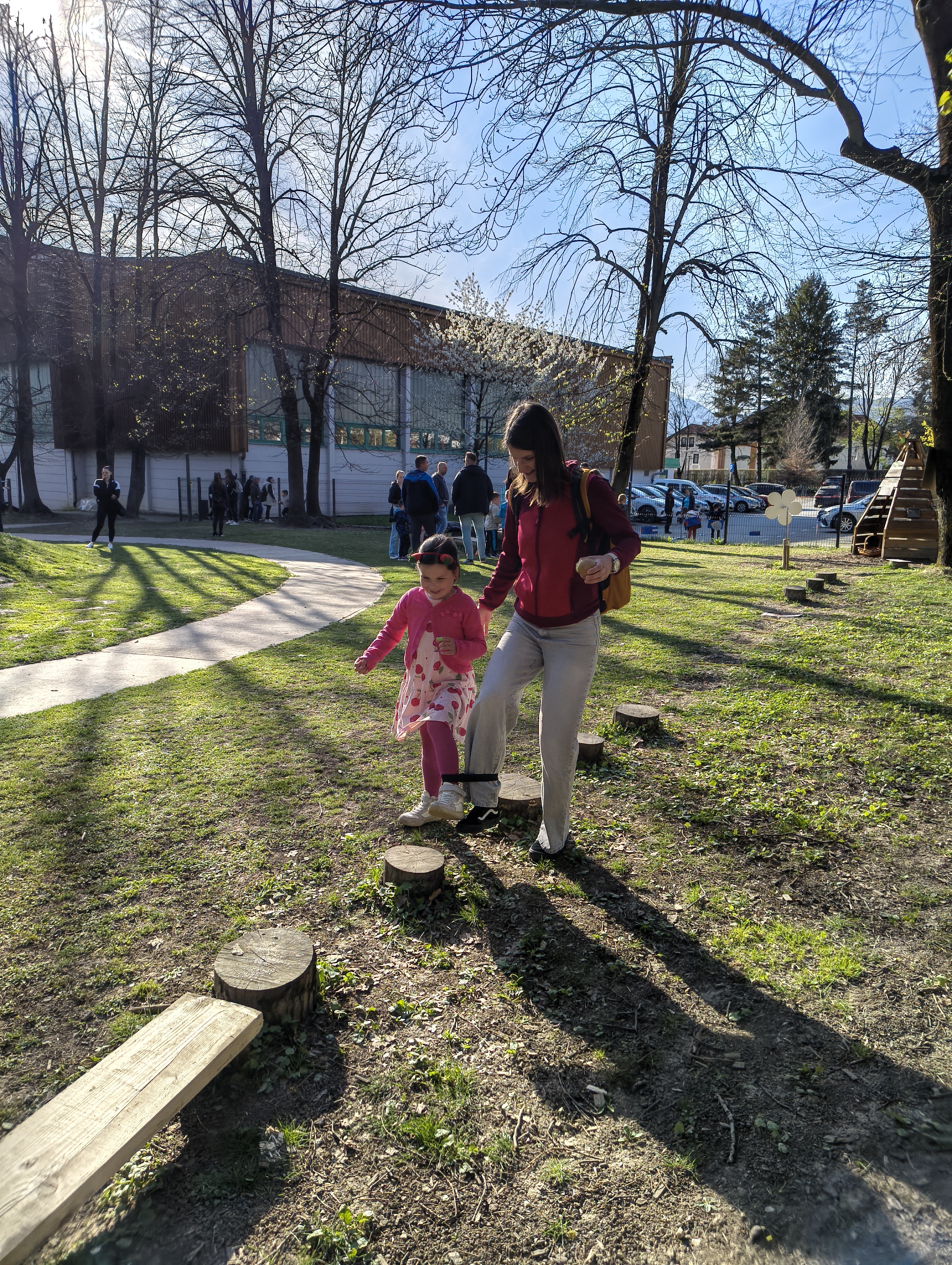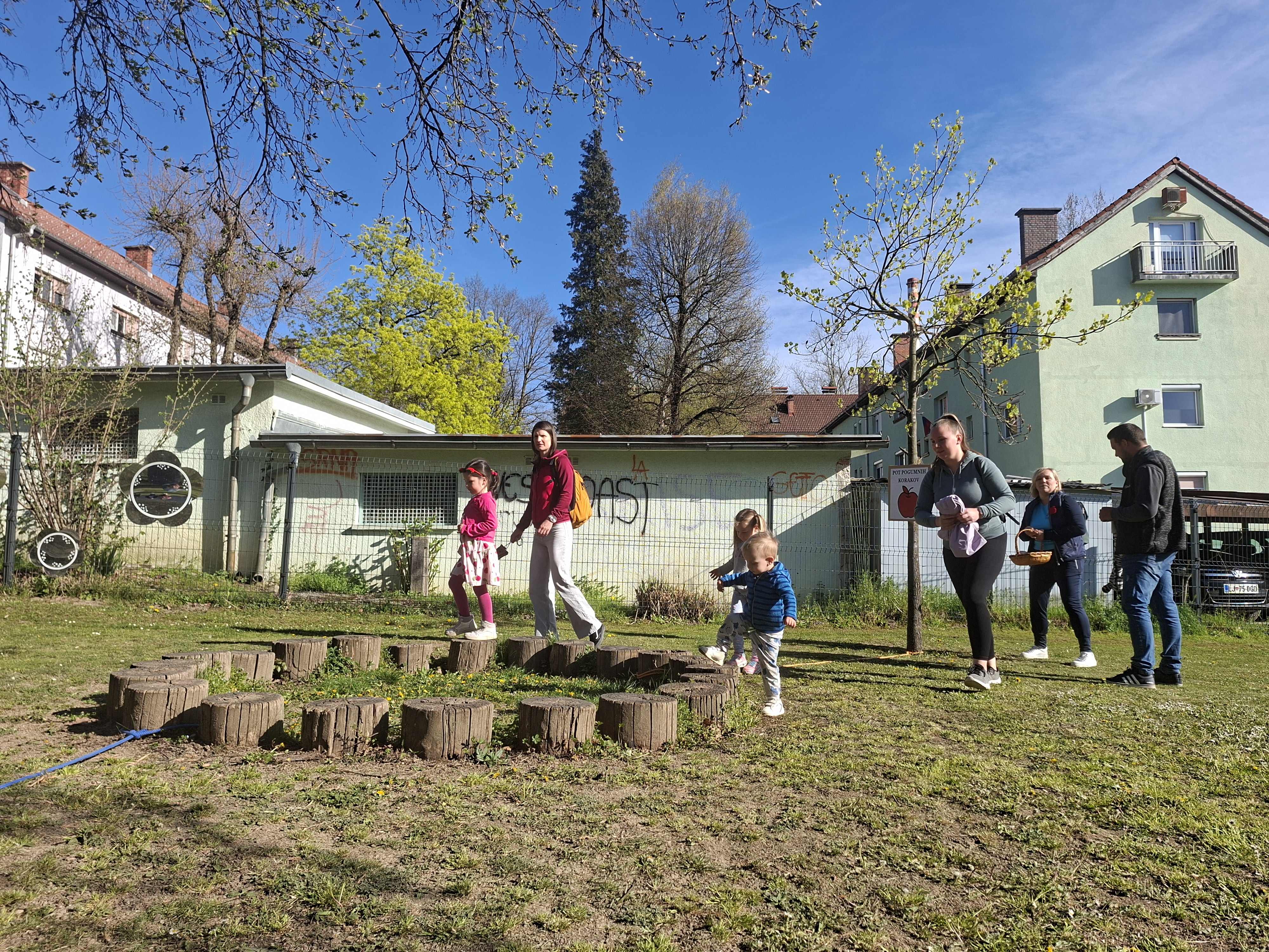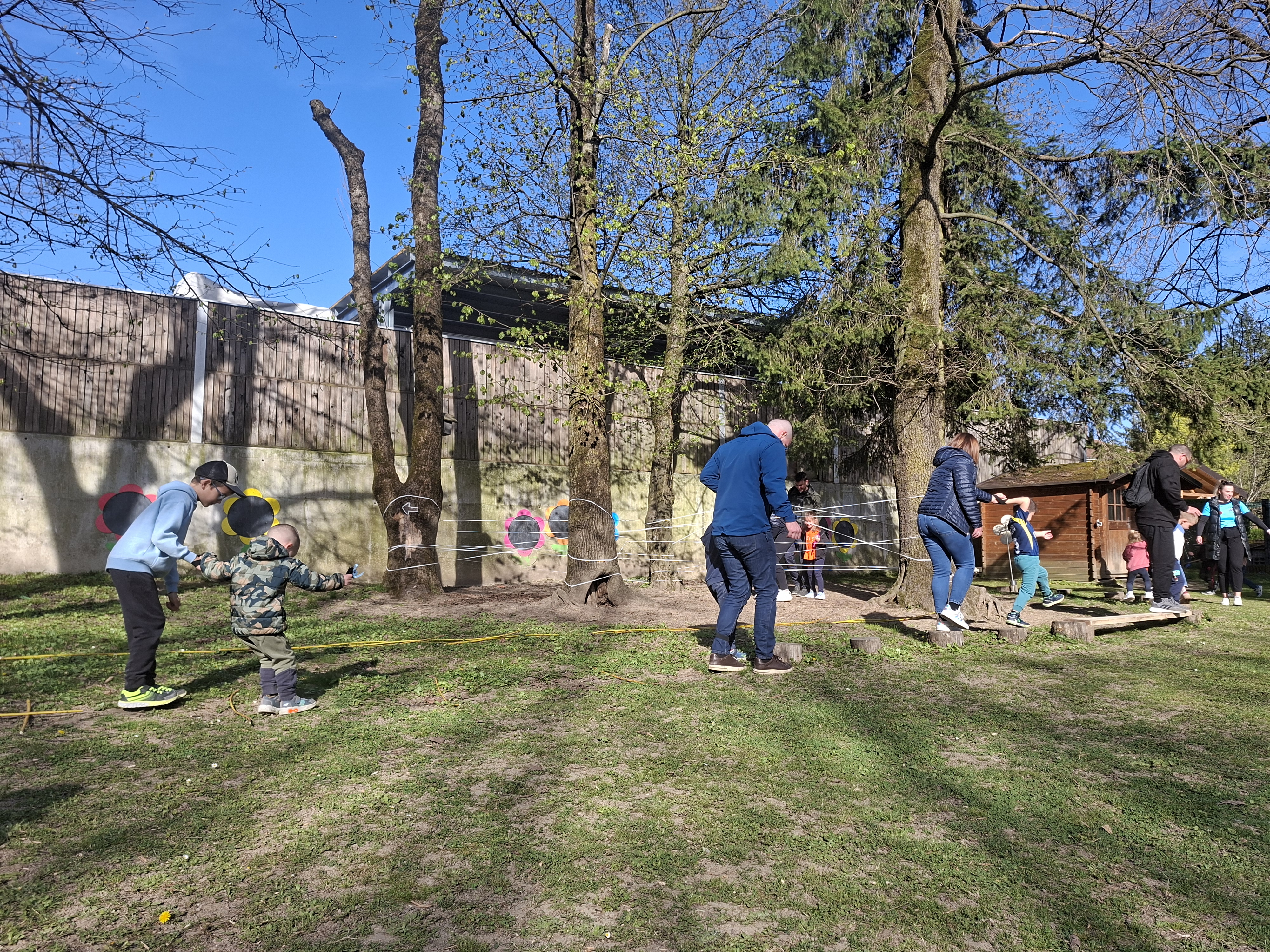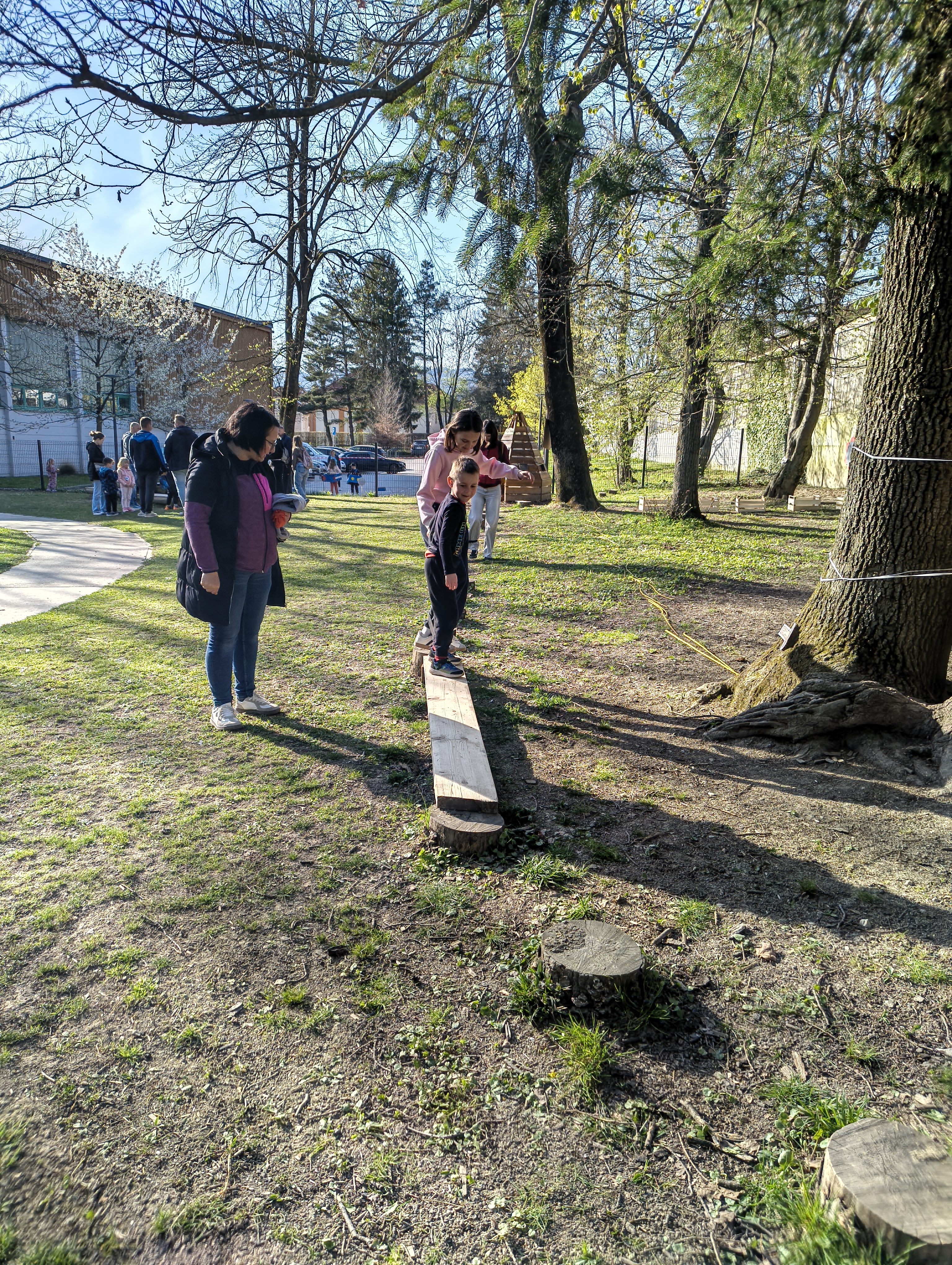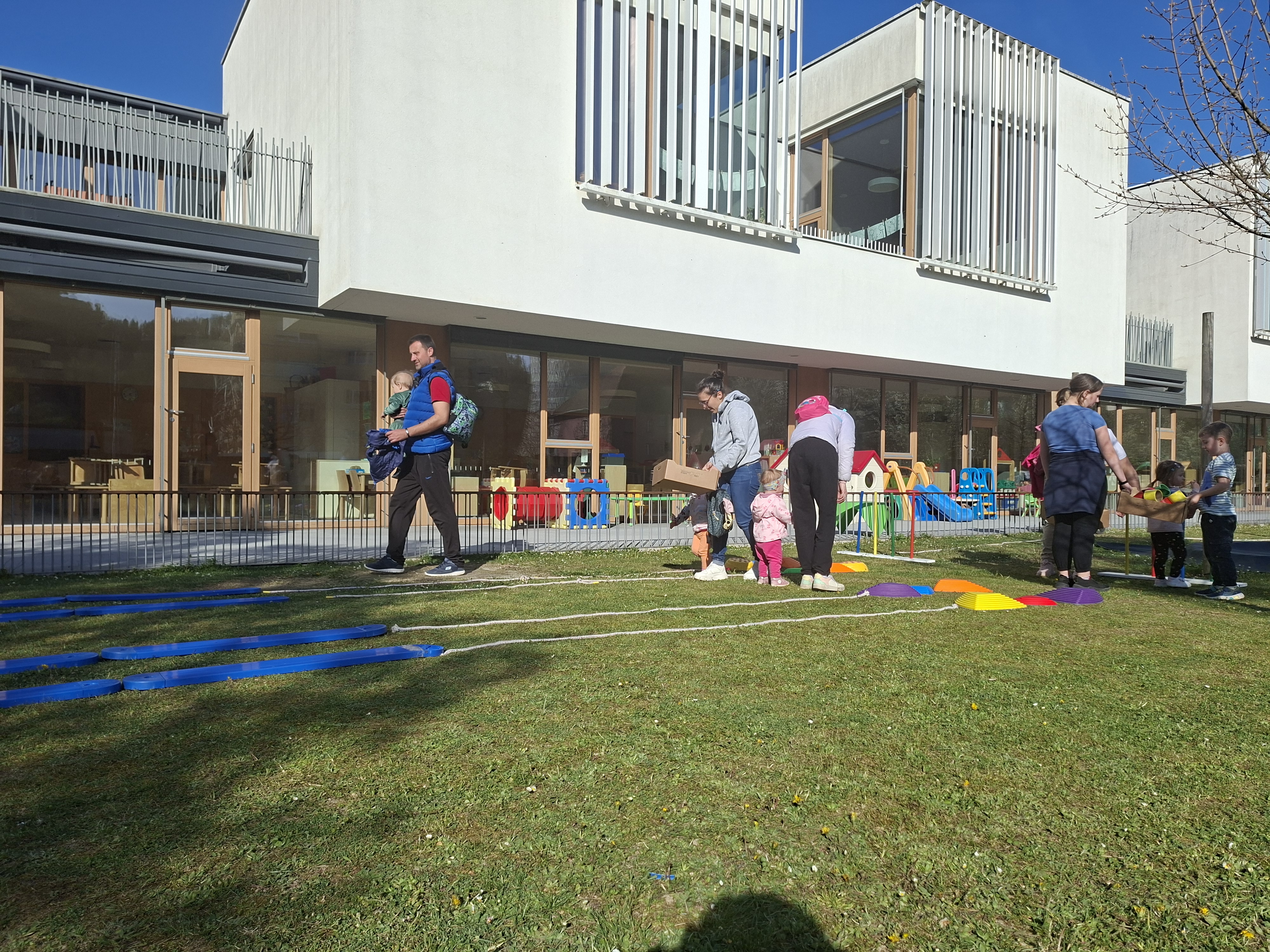 V četrtek, 9. 4. 2026, je bilo v našem vrtcu zelo živahno. Izpeljali smo dogodek z naslovom “Hoja, gibanje, smeh – za zdravje vseh”. Po uvodnem pozdravu smo se skupaj ogreli ob plesnih ritmih “Račk”, nato pa so se otroci in starši podali na igrišče, kjer jih je čakalo 13 različnih gibalnih postaj.
