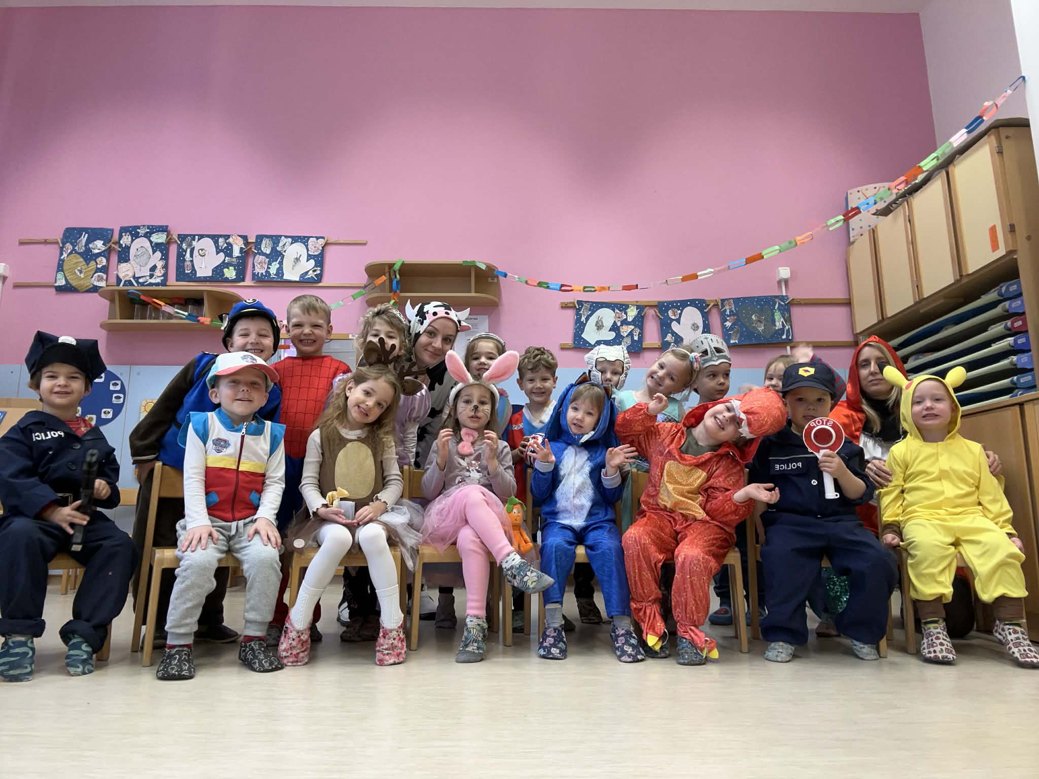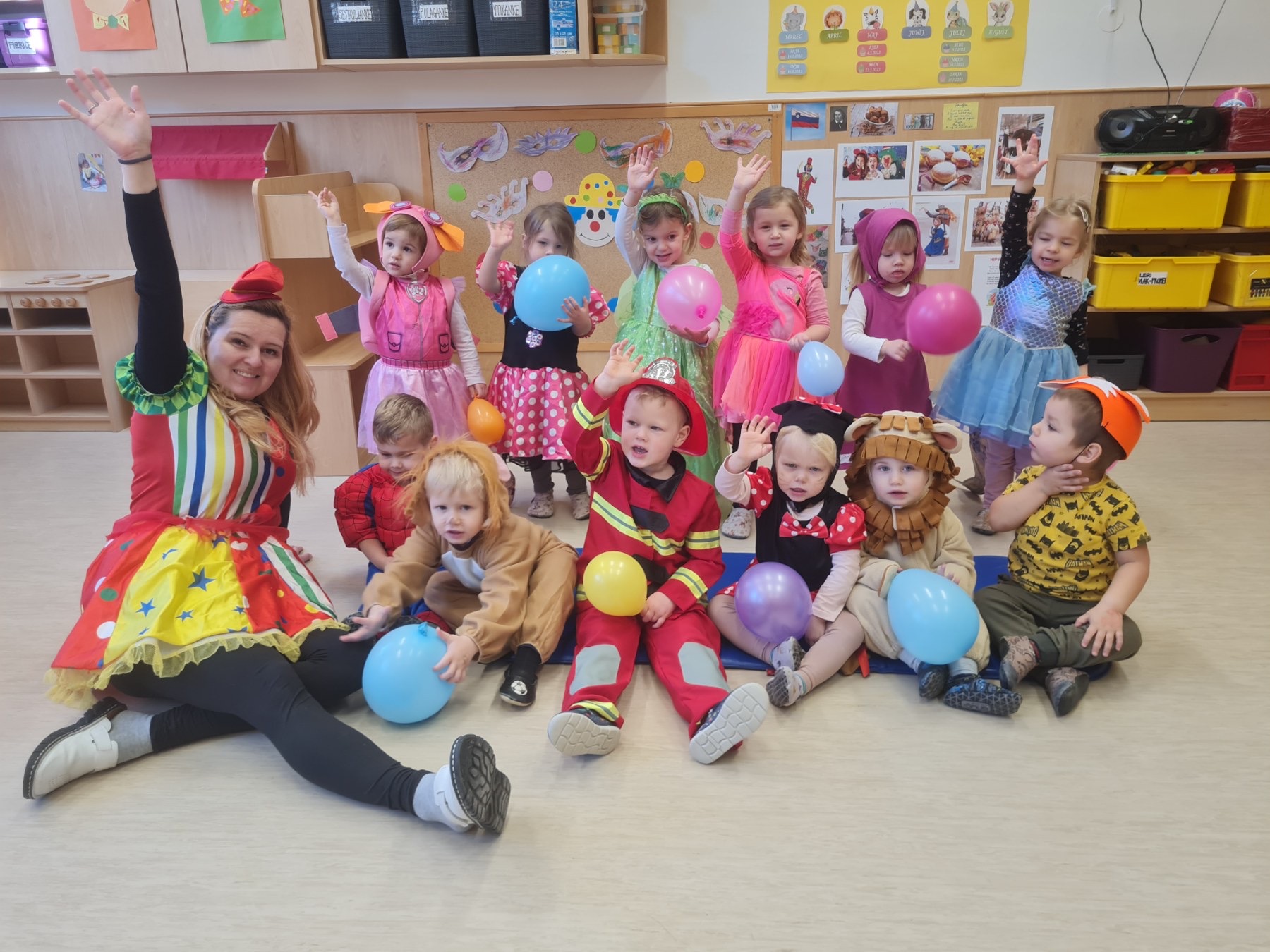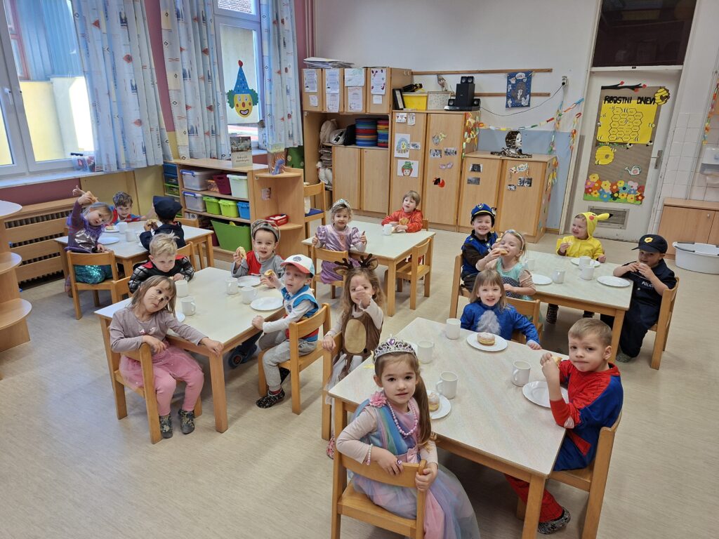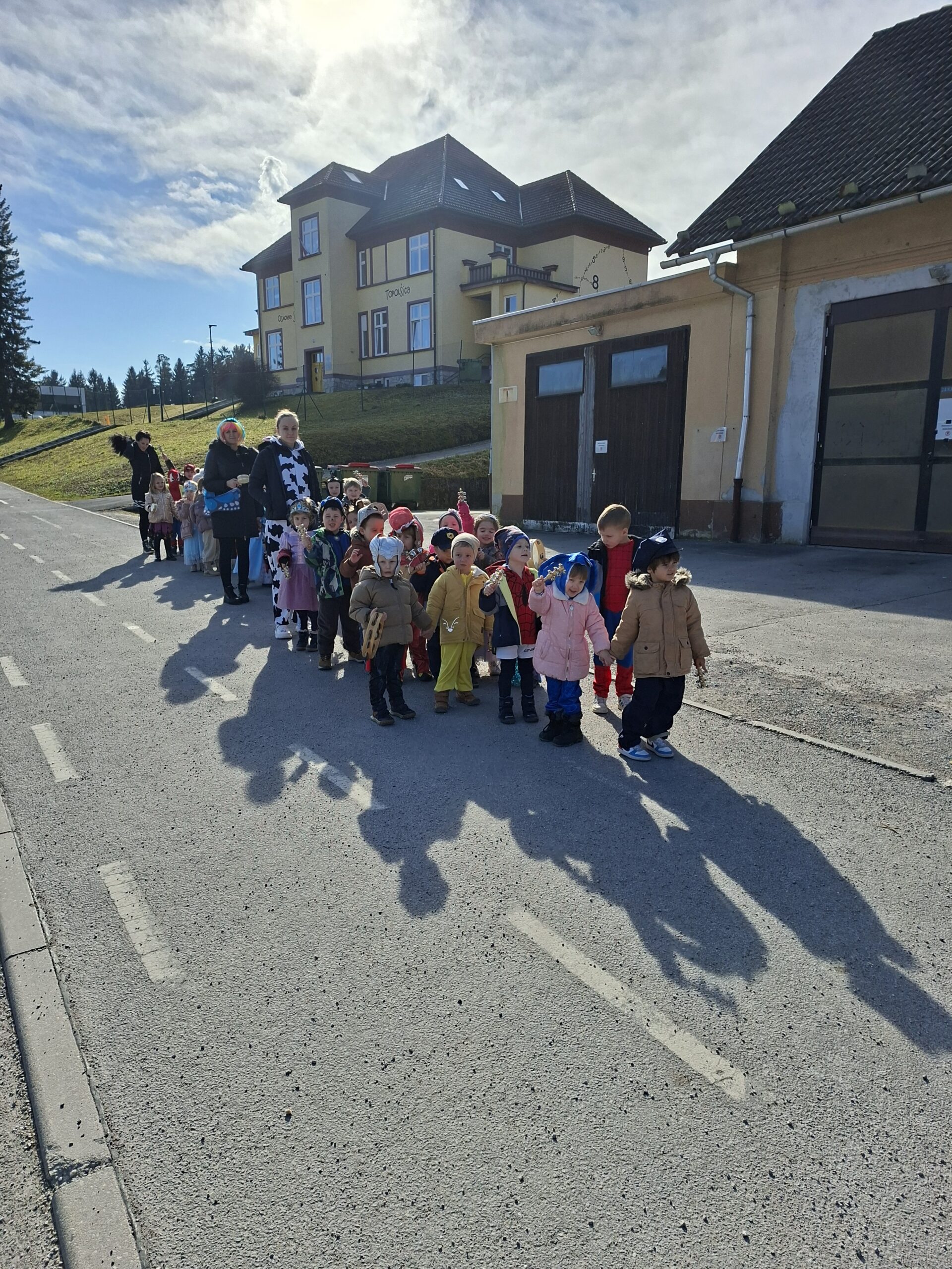 Pustni teden je v našem vrtcu potekal v znamenju veselja, barv in skupnega doživljanja. Ob obisku Košev šoštanjskih, Tresimirjev in kurentov so otroci skozi neposreden stik z obiskovalci iz lokalnega okolja doživljali medgeneracijsko povezovanje, sodelovanje in komunikacijo. S svojo energijo, zvonjenjem in tradicionalnimi maskami so obiskovalci navdušili najmlajše ter okrepili občutek pripadnosti skupnosti. Praznično okrašeni prostori z maskami, baloni in pisanimi okraski ter skupno pustno rajanje, v katerem so se otroci tudi sami našemili, so spodbujali sodelovanje, sprejemanje drugačnosti in prijetno sobivanje v skupini.